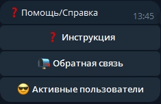 Кнопка вызывает подменю, в котором можно ознакомиться с инструкцией, найти способы связаться со мной и посмотреть список действующих пользователей.
